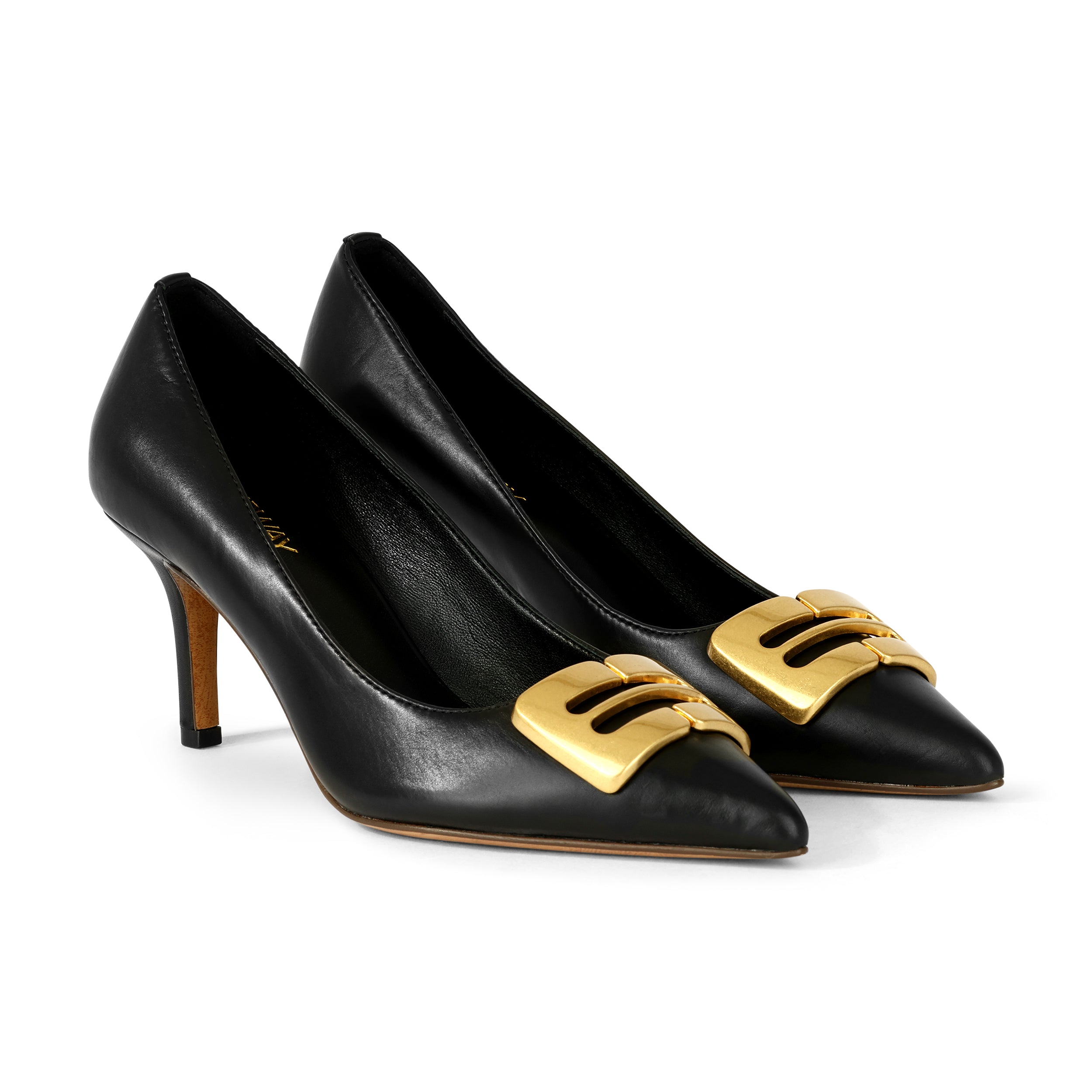 Sculpted for timeless elegance, the Murway Heel is crafted from genuine calf leather, offering a supple yet structured silhouette. Its pointed toe is adorned with bold gold-plated zinc alloy hardware, a statement accent that balances modern refinement with classic luxury. The graceful 2.8-inch heel delivers all-day comfort while elongating the leg with effortless poise. Versatile enough for day-to-night wear, the Murway Heel embodies understated sophistication—an essential in every curated wardrobe.